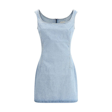 Magda Butrym’s Denim mini Dress is a garment with a bold and feminine appeal. Featuring a sleeveless design and a square neckline, it enhances the silhouette with clean, structured lines. The zipper closure adds a functional and modern touch, perfect for a casual look with contemporary character.