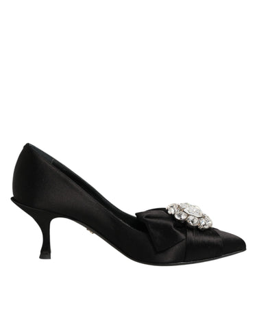 Dolce & Gabbana Black Satin Bow Crystal Embellishment Pumps Shoes