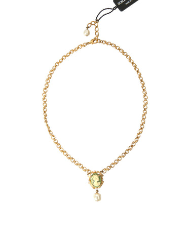 Dolce & Gabbana Gold Brass Chain Pearl Pendant Charm Necklace