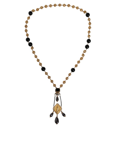 Dolce & Gabbana Gold Chain Brass Black Beaded Rosary Style Necklace