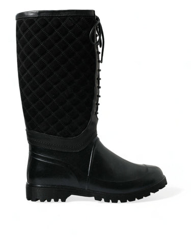 Dolce & Gabbana Black Chioggia Rubber Suede Rain Boots Shoes
