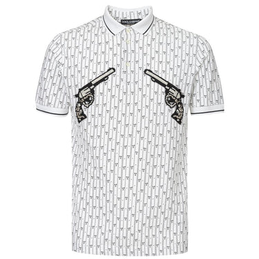White Piquet Polo shirt with Dolce & Gabbana Allover Print. Allover micro flower print, shirt collar, button closure, Pistola embroidery applied on sides. Composition: 100% Cotton. Inner Sku: 24SET03