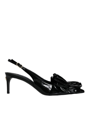 Dolce & Gabbana Black Patent Leather Heels Slingback Shoes