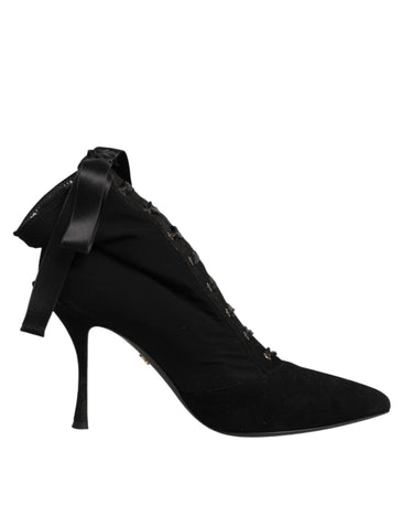 Dolce & Gabbana Black Stiletto Heels Lace Up Boots Shoes