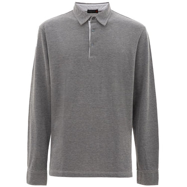 Corneliani Grey Long-Sleeve Polo Shirt in grey cotton, featuring a classic polo collar with four bi-color buttons in white.